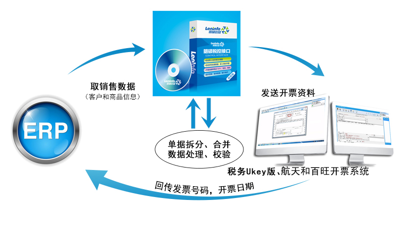 (1)無(wú)需額外硬件投入,企業(yè)ERP系統(tǒng)將同航天、百旺、稅務(wù)Ukey版開(kāi)票系統(tǒng)實(shí)現(xiàn)無(wú)縫連接,可保證業(yè)務(wù)系統(tǒng)與稅控開(kāi)票信息資料的一致性!